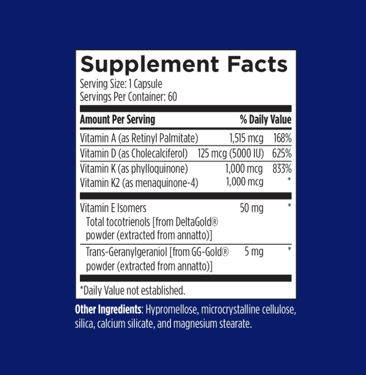 - Geranylgeraniol (GG) Supports the production of vitamin K2 (as MK-4) in the body. Our body’s production of GG generally declines during aging. In addition, the use of certain medications (particularly for treating high cholesterol and osteoporosis) can inhibit GG production.